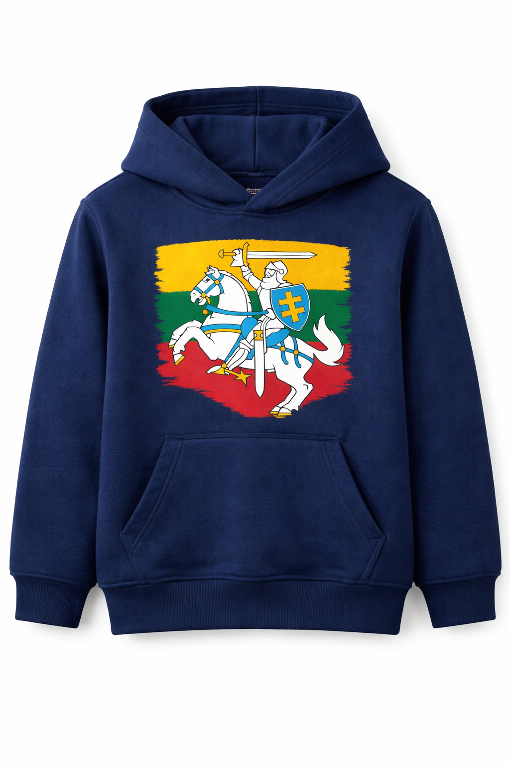 Medvilninis džemperis, su kapišonu ir kišenėmis.